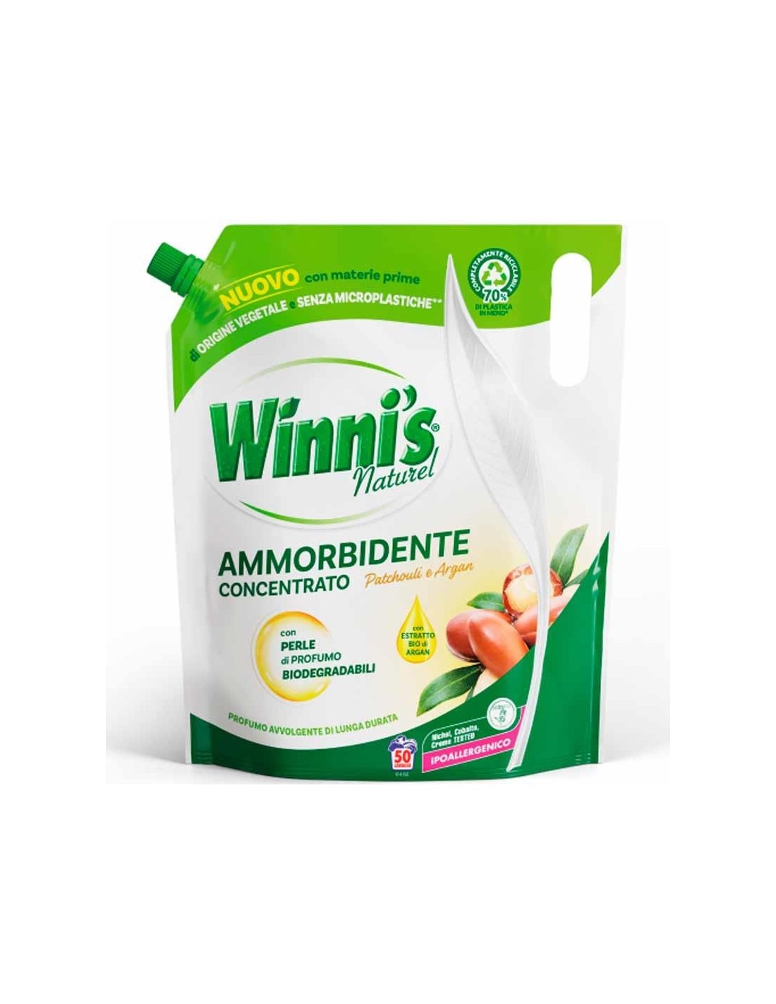 Grazie alle nuove perle di profumo da oggi Winni's ammorbidente è ancora più% Sostenibile: perchè le Perle di profumo sono completamente biodegradabili, provenienti da fonti bio e non contengono plastica. Efficace perché le Perle di profumo si attivano ad ogni movimento donando ai capi una fresca e piacevole fragranza che dura nel tempo rispetto alla formula precedente. Con materie prime di origine vegetale da fonti rinnovabili e tensioattivi completamente biodegradabili. Formula concentrata 25 ml Più profumo in ogni goccia Mono materiale busta e tappo mono materiale completamente riciclabili Ipoallergenico Formula studiata per ridurre al minimo la possibile insorgenza di allergie Senza coloranti Winni's ammorbidente concentrato ammorbidisce i capi e migliora i risultati del lavaggio perchè distende i tessuti, riduce i residui calcarei all'interno delle fibre e facilita la stiratura.