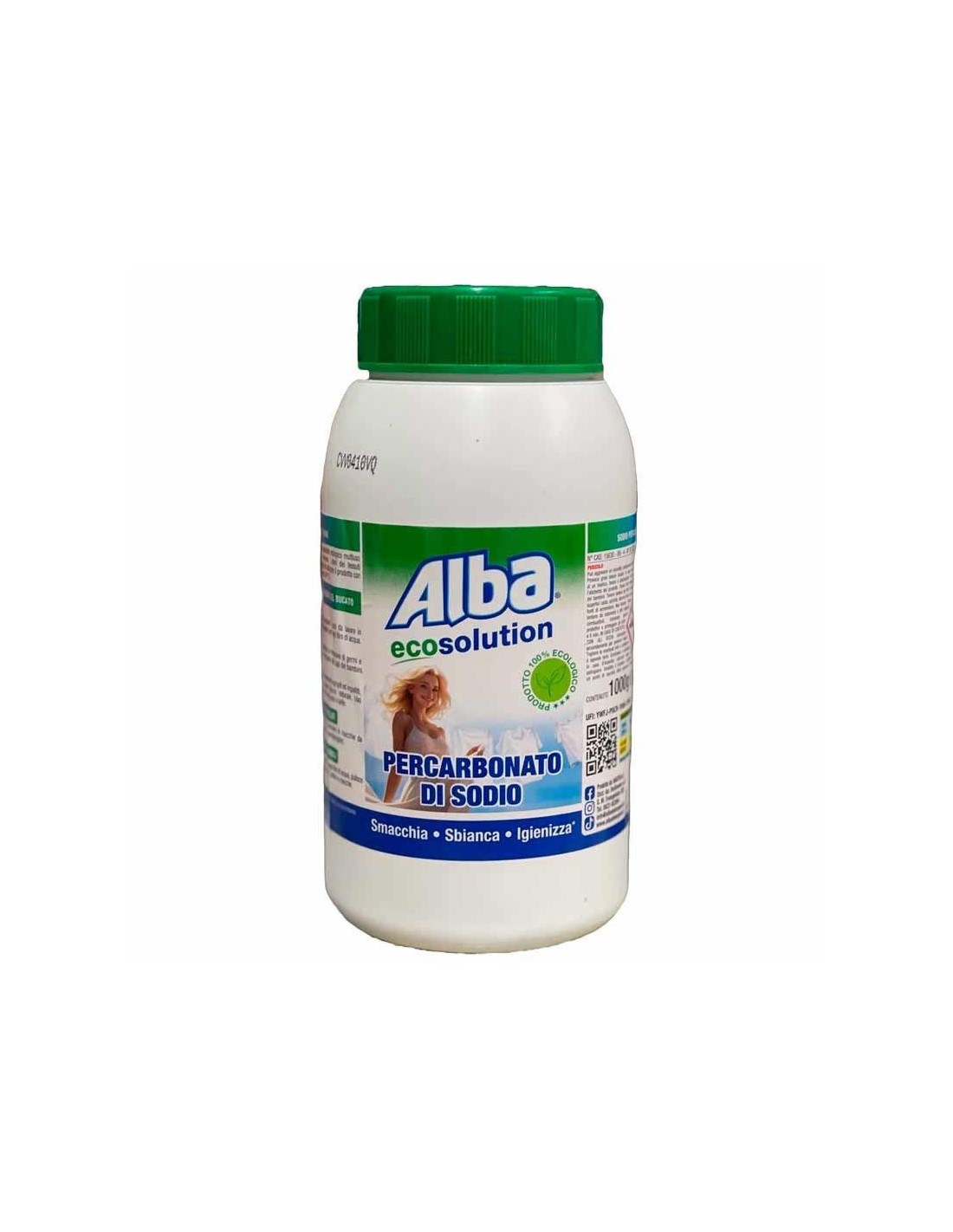 Alba Percarbonato di Sodio 1 Kg. Il percarbonato di sodio è una soluzione efficace ed ecologica per sbiancare naturalmente il bucato, per igienizzarlo e per rimuovere le macchie. Rispetta i tessuti e smacchia già a 30 gradi. La sua efficacia sbiancante è maggiore rispetto a quella del bicarbonato di sodio. Inoltre, si tratta di un prodotto totalmente eco friendly e biodegradabile. Scegli l'alternativa sostenibile alla candeggina, per tutte le pulizie di casa nel rispetto dell'ambiente.