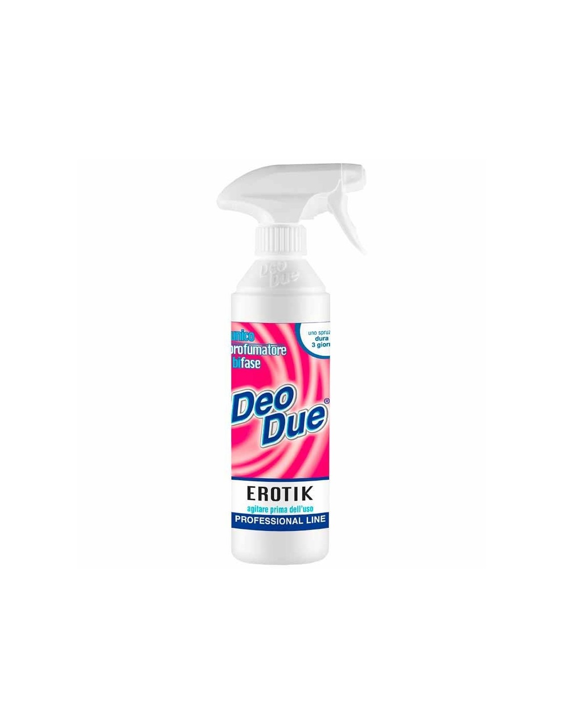 Deo Due profumatore bifase è un prodotto innovativo sviluppato con una  procedura  d’avanguardia che grazie alla doppia fase garantisce un effetto  gradevole e  persistente nell’ambiente. La sua caratteristica principale è  un doppio strato formato da una fase  superiore profumante e da una fase  inferiore fissativa e neutralizzante che, in  combinazione garantiscono una  lunga persistenza nell’ambiente.