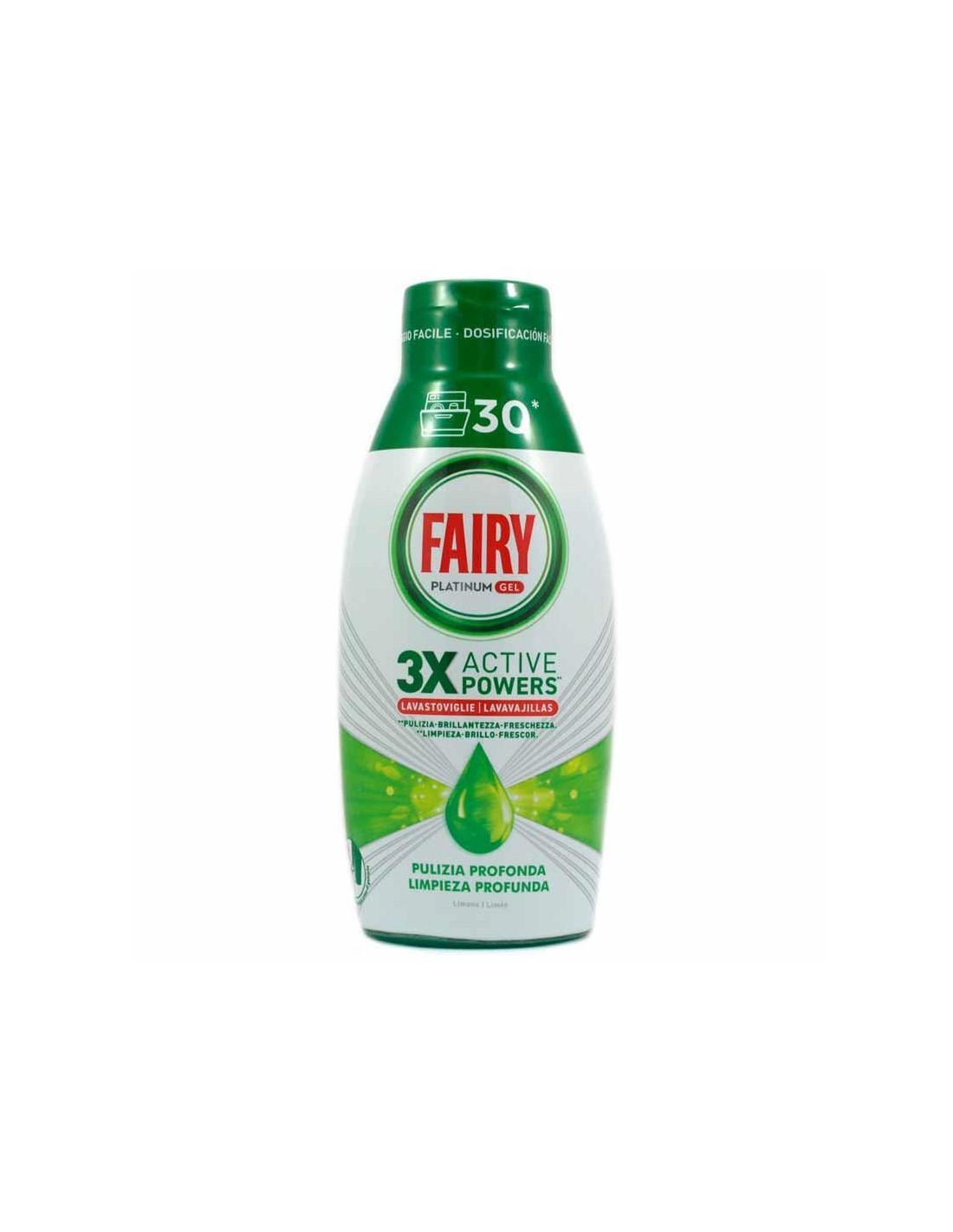 Per avere piatti puliti, prova Fairy Platinum Gel. Il gel per lavastoviglie Fairy Platinum con i suoi 3 poteri attivi combina pulizia, brillantezza e freschezza. Si dissolve rapidamente anche a basse temperature e può essere utilizzato nei cicli brevi. Pulizia profonda 3 poteri attivi, pulizia, brillantezza, freschezza. Dissoluzione rapida