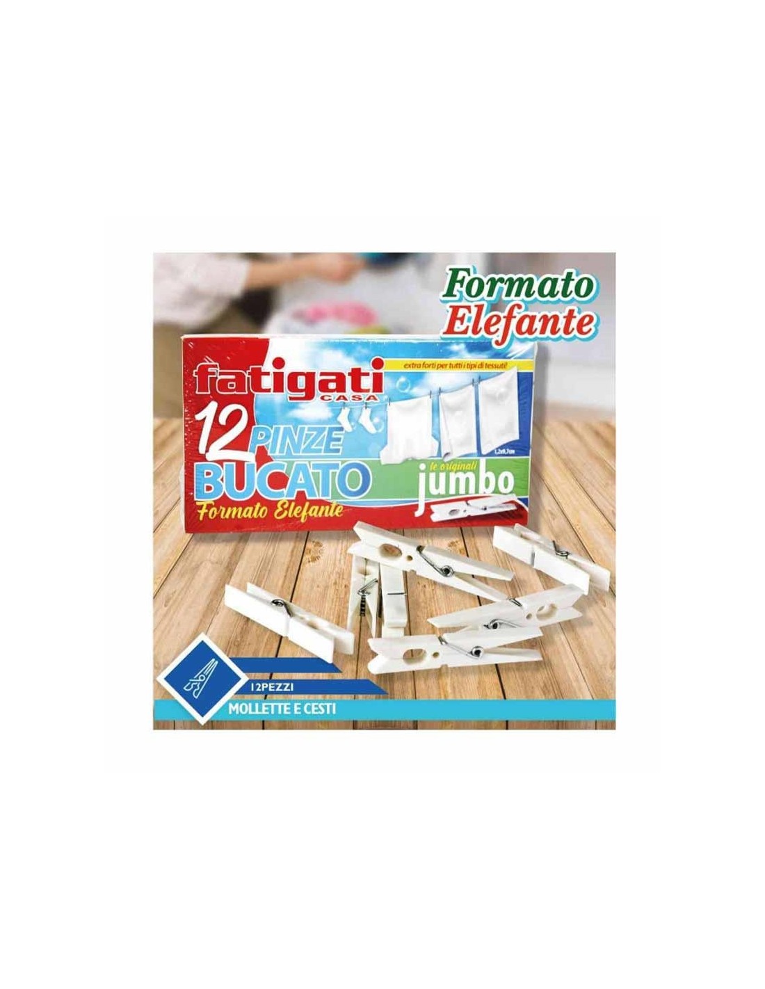 Fatigati Mollette Bucato Jumbo Scatolata 12 pezzi