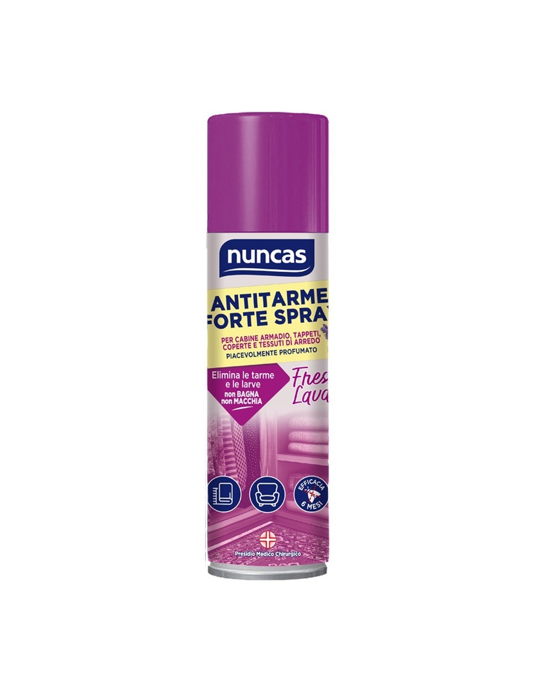 Lo spray antitarme di Nuncas è un tarmicida di nuova concezione che combatte larve e tarme adulte con un'azione forte