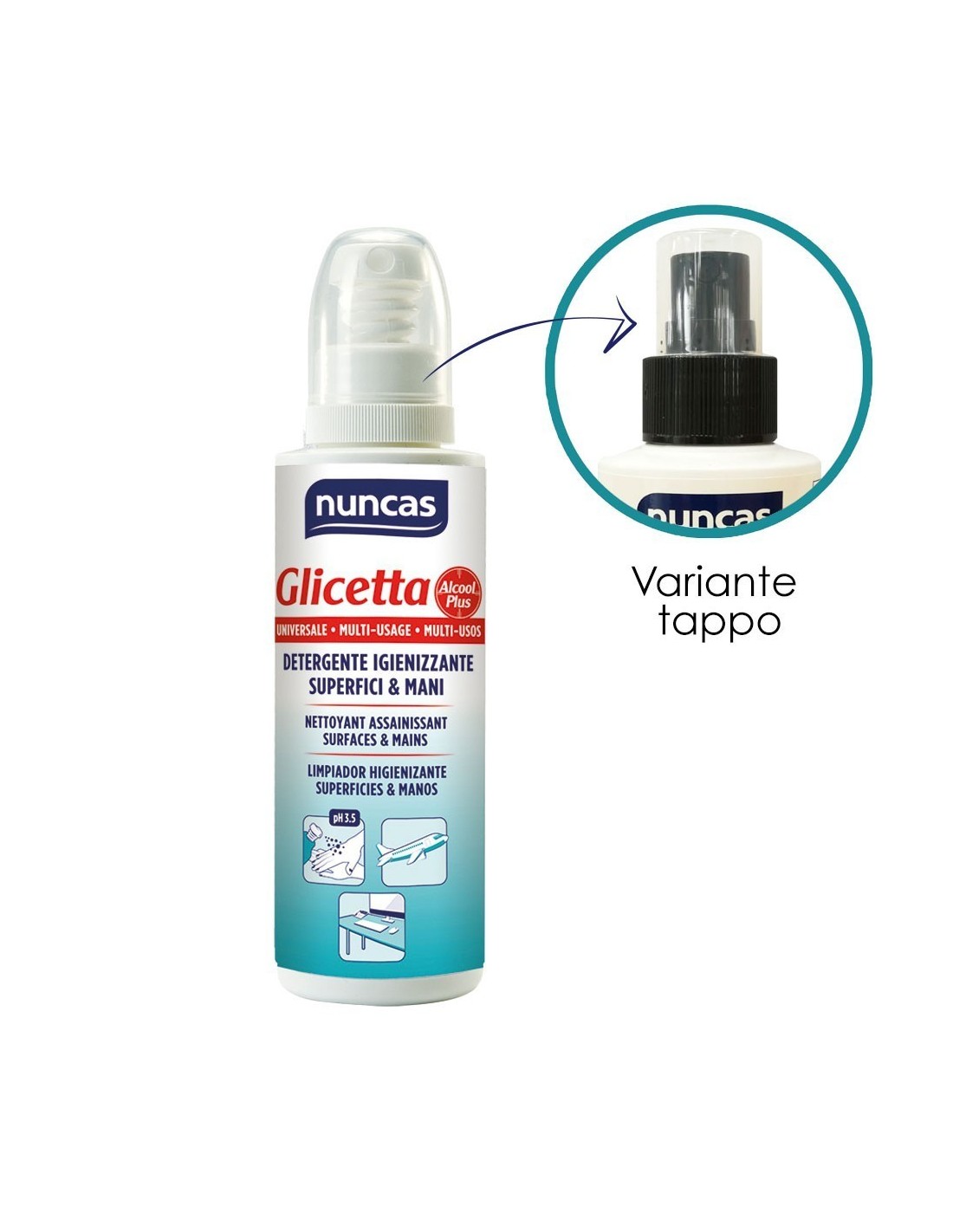 Glicetta Alcool Plus fuori casa è perfetto per la pulizia rapida e veloce di piccole superfici con cui entriamo in contatto e che potrebbero essere contaminate sui mezzi pubblici, al supermercato, in ufficio, al parco. Grazie al pratico formato tascabile puoi portarlo sempre con te in ogni viaggio o spostamento, anche comodamente in borsetta, nello zaino o in valigia. Asciuga rapidamente e non appiccica. E’ perfetto anche per essere utilizzato direttamente sulle mani, grazie alla presenza di glicerina, non secca la pelle e la mantiene morbida anche dopo diverse applicazioni; un gesto di pulizia, di igiene e di cura in soli 15 secondi.