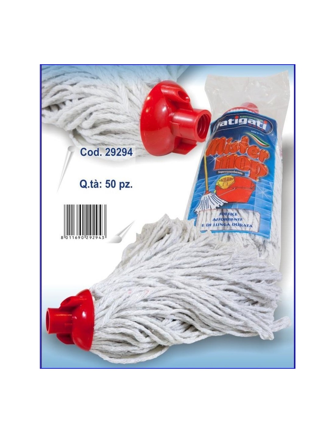 Mop in cotone da 200g  per il lavaggio delle superfici. Con attacco a vite universale.