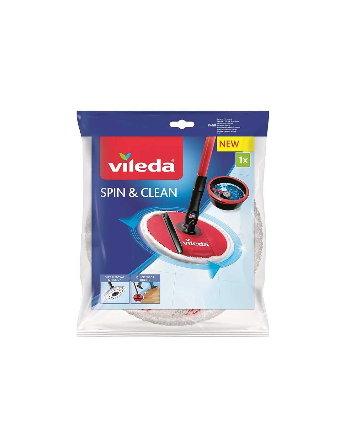 Vileda spin e clean ricambio. Mop in microfibra che rimuove facilmente lo sporco, anche quello più ostinato e pavimenti asciutti in modo rapido.
