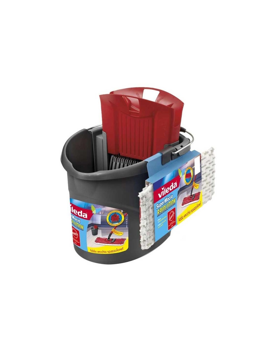 Revolution è l'innovativo sistema lavapavimenti che combina ottime performance a massima praticità. Grazie all'ampia piastra rettangolare, questo sistema Vileda è l'unico che pulisce come uno spazzolone e offre la comodità del tradizionale Mocio, garantendo una pulizia profonda e mani sempre asciutte. Il nuovo strizzatore, dal design moderno, non solo facilita l'inserimento del panno ma ne permette grazie alle molle attive una strizzatura più confortevole e il cestello profilato favorisce un maggior rilascio di acqua per raggiungere il livello di umidità desiderato del panno, garantendo pavimenti subito asciutti e mani sempre pulite. Il panno 2in1 Microfibra assicura pavimenti brillanti, anche solo con acqua grazie alle fibre bianche, ed è imbattibile contro lo sporco più ostinato, grazie alle fibre rosse e grigie. Un panno per il pavimento adatto a tutte le superfici, anche le più delicate come il parquet, ed è facile da applicare alla piastra, grazie ai pratici bottoni. Il sistema lavapavimenti Revolution è dotato di un 'ampia piastra piatta che permette una maggiore adesione al pavimento e una superiore rimozione dello sporco senza sforzo. La piastra è dotata di attacco universale, quindi è utilizzabile con il manico della tua scopa, e di snodo a 180, per raggiungere anche i punti più difficili.