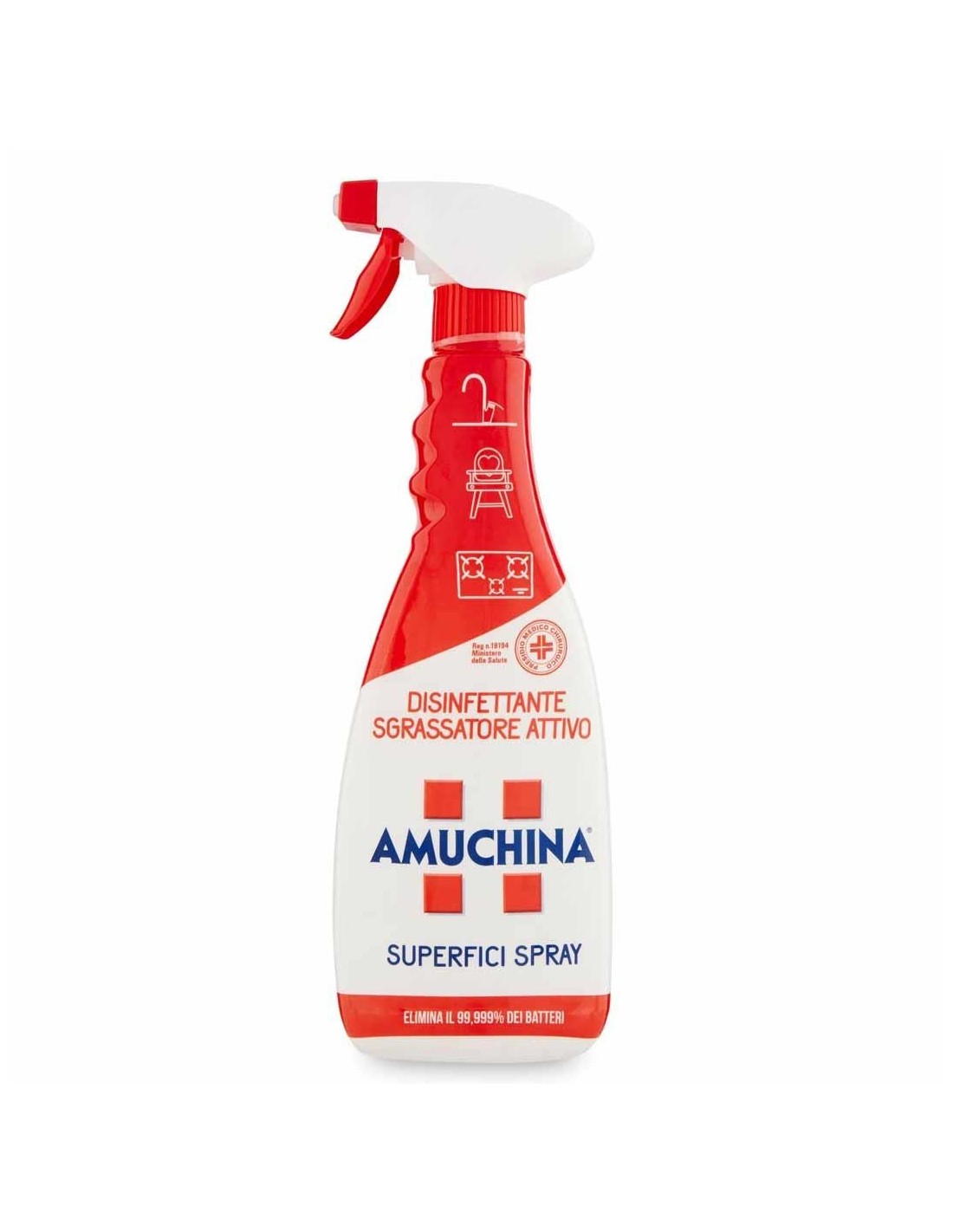 Un Disinfettante Sgrassatore Attivo che puoi utilizzare per la disinfezione profonda di tutte le superfici, da quelle più unte a quelle in cui lo sporco è più resistente, per forni e fornelli, piani di preparazione dei cibi, frigoriferi, ecc. Amuchina Superfici Spray è inoltre adatto per la disinfezione di tutte le superfici che vengono in contatto con neonati e bambini come fasciatoi, seggioloni, lettini, vasche per il bagnetto, giocattoli, ecc.