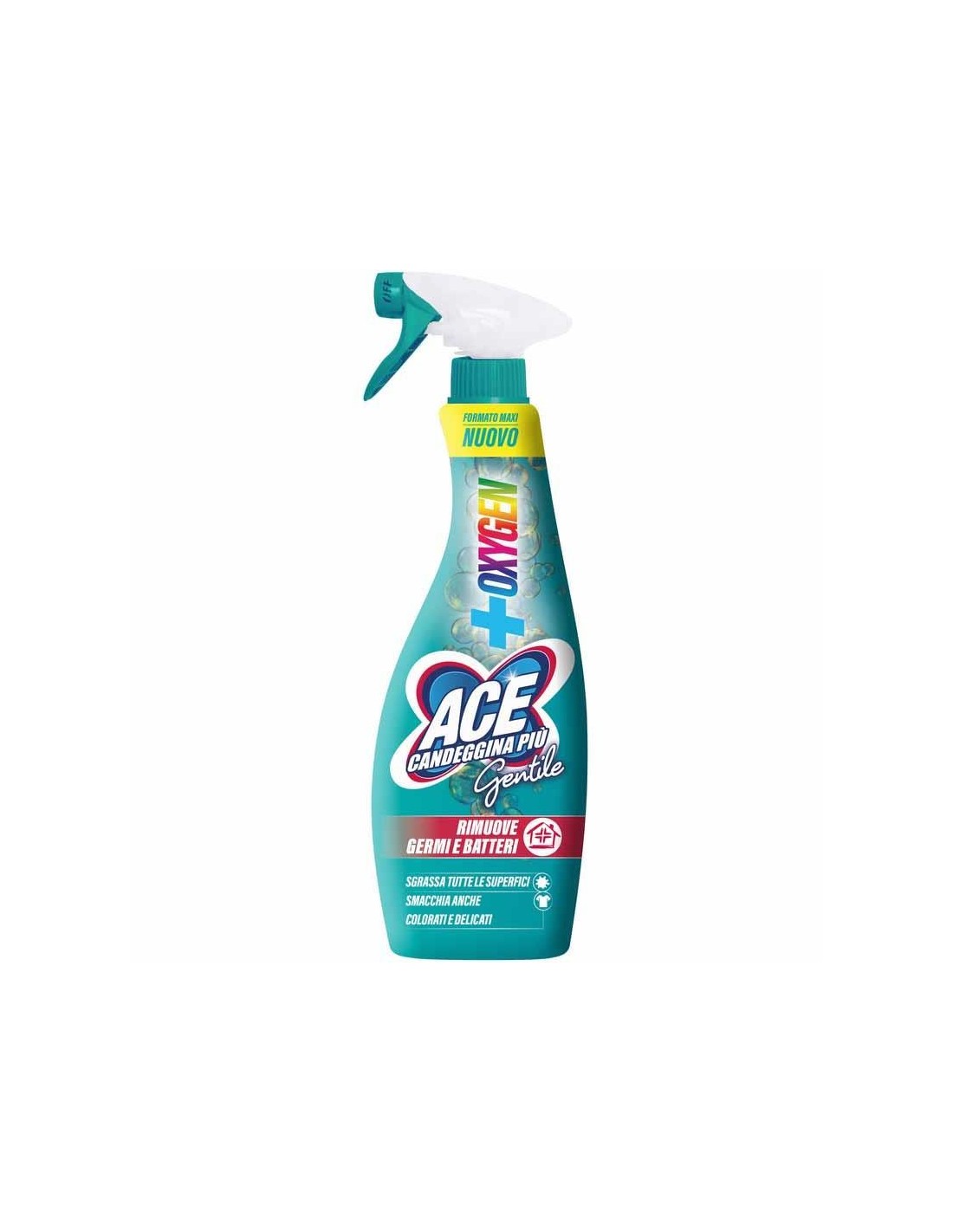 Ace candeggina più gentile spray oxygen igienizza in profondità, sgrassa e rimuove le macchie d’acqua da tutte le superfici come quelle del bagno e della cucina. Grazie alla sua formula smacchia anche le macchie più ostinate dai capi colorati e delicati.